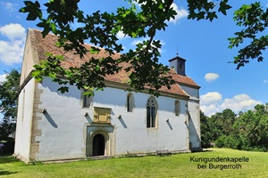 Nach Kaffee und Kuchen führte uns die erste Tour zu der zum "Bieberehrener Bilderbuch" gehörende um 1232/1240 erbauten Kunigundenkapelle. Interessant auch die nur wenige Meter entfernt stehende 1000jährige Linde.