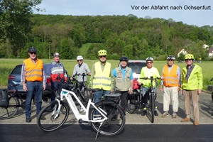 Gefahren sind wir auf einem Radweg, der auf der Eisenbahntrasse der ehemaligen Gaubahn verläuft, von der Tauber zum Main und zwar von Bieberehren über 60 km nach Ochsenfurt und wieder zurück. Auf asphaltiertem Grund abseits vom Straßenverkehr durchquerten wir eine abwechslungsreiche Landschaft: Wiesen, Felder, Wald. Die gesamte Strecke zeichnet sich auch dadurch aus, dass keine steilen Anstiege oder Abfahren zu bewältigen sind.