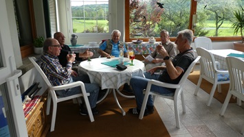 In der bayrischen Kleinstadt Bieberehren fanden wir im Gästehaus "Zur Romantischen Straße" eine sehr schöne Herberge. Geschmackvolle Zimmer, ein freundlicher Gästeraum und ein sehr reichhaltiges Frühstück runden das positive Bild von unserem Domizil ab. Besonders erwähnenswert auch unsere Gastgeberin Frau Ute Mattner, die stets bemüht war, unseren Aufenthalt so angenehm wie möglich zu machen. Bei unseren abendlichen Diskussionen über Gott und die Welt und natürlich über das Taubertal, setzte sich Frau Mattner auch zu einem Glas Frankenwein in unsere Runde. Kniffliges gab es wieder von Erwin, der mit seinem Bilderrätsel über Edingen uns manch' harte Nuss auftischte.